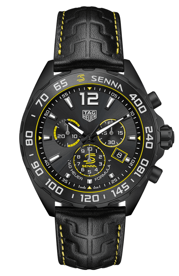 O TAG Heuer Formula 1 Senna é um relógio em homenagem ao icônico piloto Ayrton Senna, combinando design esportivo e elegância. Ele conta com caixa de 43 mm em aço inoxidável, movimento quartz preciso, resistência à água de até 200 metros e pulseira estilo “S-Link”, inspirada nos modelos usados por Senna. Suas funções incluem cronógrafo e detalhes que remetem ao universo automobilístico, celebrando a velocidade e excelência que marcaram a carreira do piloto.