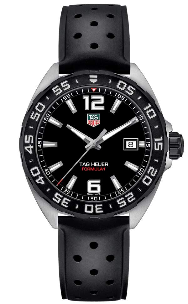 O Tag Heuer Formula 1 Date é um relógio esportivo e elegante, inspirado no automobilismo. Ele possui movimento quartz, caixa de aço inoxidável de 41 mm e resistência à água de até 200 metros. Seu mostrador apresenta design sofisticado com marcadores luminescentes e função de data, enquanto o bezel unidirecional e a pulseira em borracha garantem conforto e estilo. É ideal para quem busca praticidade com um toque refinado.